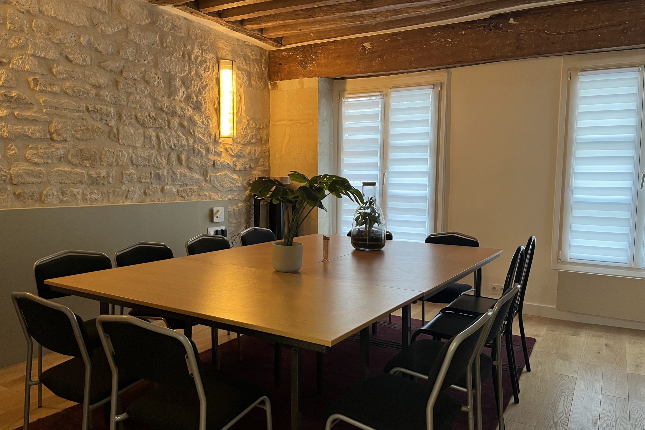 Dans ces espaces à la lumière du jour, au plein cœur de Paris, nous disposons de plusieurs équipements : connexion WIFI, vidéo-projecteur, imprimante, prises électriques, écran de projection, téléviseur, bouteilles d’eau… Si vous le souhaitez, un service de restauration est disponible en supplément.